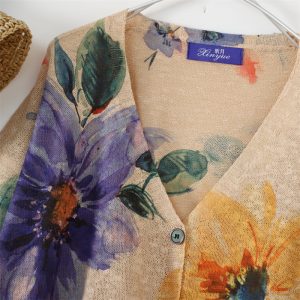 Cotton and linen knitted short-sleeved 2024 summer new retro printed ethnic style cardigan T-sleeve Fabric name: cotton and linen Main fabric composition: linen Main fabric component 2: cotton